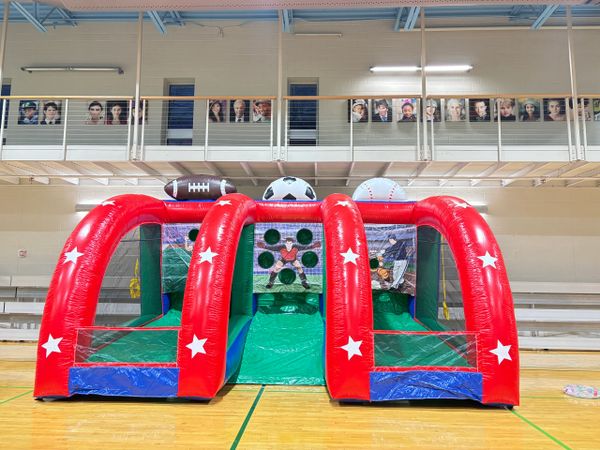 We can set up on grass, turf, concrete, or asphalt. Just let us know in advance so we can bring the right equipment (like sandbags for concrete setups).